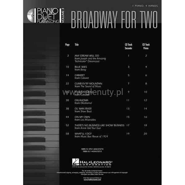 Piano Duet Play-Along Vol. 3: Broadway For Two (+ płyta CD) - nuty na fortepian na cztery ręce