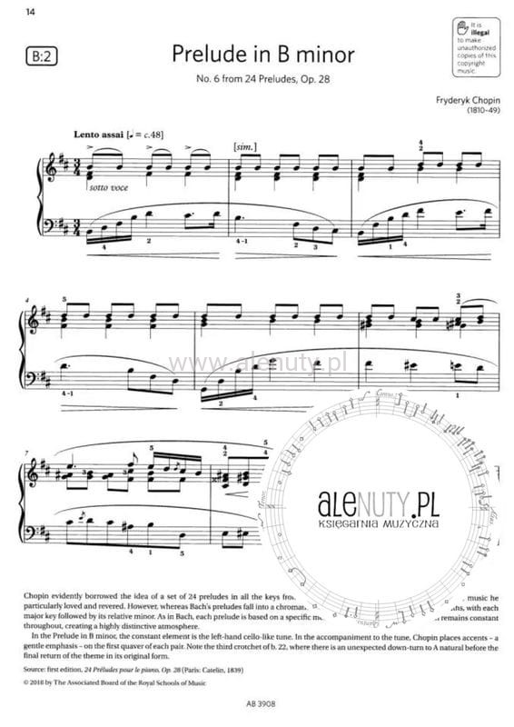 Książka zawiera dziewięć utworów z sylabusa ABRSM Grade 6 Piano na rok 2019 i 2020, po trzy utwory wybrane z każdej z list A, B i C. Utwory zostały starannie dobrane, aby oferować atrakcyjny i zróżnicowany wachlarz stylów, tworząc kolekcję, która stanowi doskonałe źródło repertuaru dla każdego wykonawcy. Publikacja zawiera również pomocne przypisy, a dla przygotowujących się do egzaminów przydatne informacje sylabusowe. Nuty na fortepian dla średnio-zaawansowanych.