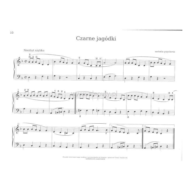 22 piosenki dziecięce, popularne i bardzo dobrze znane, w łatwym opracowaniu na fortepian. Bardzo duży przejrzysty druk, ułatwia maluchom odczytywanie nut. Wszystkie utwory opracowane przez Tomasza Trojanowskiego, dobrze znanego w środowisku muzycznym pedagoga.