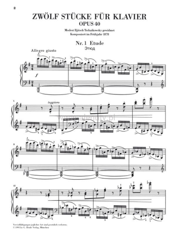 Piotr Czajkowski: Twelve Piano Pieces op. 40 - dwanaście utworów fortepianowych - nuty na fortepian