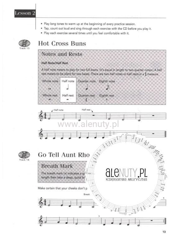 Szczegółowa, przejrzysta i doskonale dopracowana szkoła gry na klarnecie dla początkujących wykonawców. Publikacja mieści w sobie czytelne instrukcje, wspaniałe piosenki, profesjonalnej jakości ścieżki dźwiękowe oraz akompaniamenty instrumentalne. Z tej serii mogą korzystać uczniowie w każdym wieku oraz nauczyciele prowadzący lekcje indywidualne lub grupowe. Dzięki temu kompletnemu przewodnikowi dowiesz się: jak złożyć i dbać o instrument, jak wydobywać dźwięk i czytać notację muzyczną, znajdziesz tu także wskazówki dotyczące opalcowania, słownik terminów muzycznych i wiele więcej! Ucz się we własnym tempie dzięki wspaniałym utworom i przykładom!