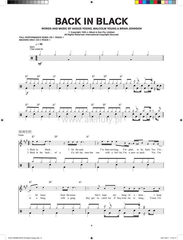 Pozycja z serii 'Play Drums With' zawiera kolekcję 18 klasycznych piosenek takich zespołów jak The Police, The Beatles czy AC/DC w opracowaniu na perkusję. Do książki dołączona jest płyta CD z plikami audio lub MP3. Znajdziesz na niej podkłady (backing tracks).