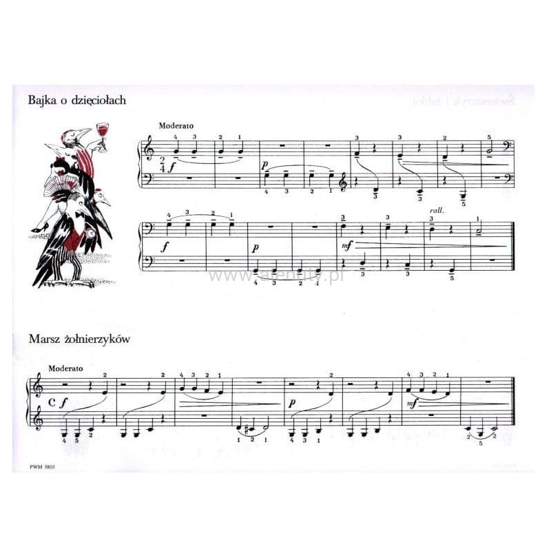 Publikacja ma na celu zaznajomienie dzieci przedszkolnych z grą na fortepianie, oraz przekazanie nauczycielom wiedzy o tym jak rozłożyć materiał na poszczególnych lekcjach, jakie przyjąć tempo pracy, dozować trudności i wiele innych informacji przydatnych dla początkującego nauczyciela. Książka składa się z części metodycznej zawierającej opracowanie 70 kolejnych lekcji oraz części z ćwiczeniami pomocniczymi.