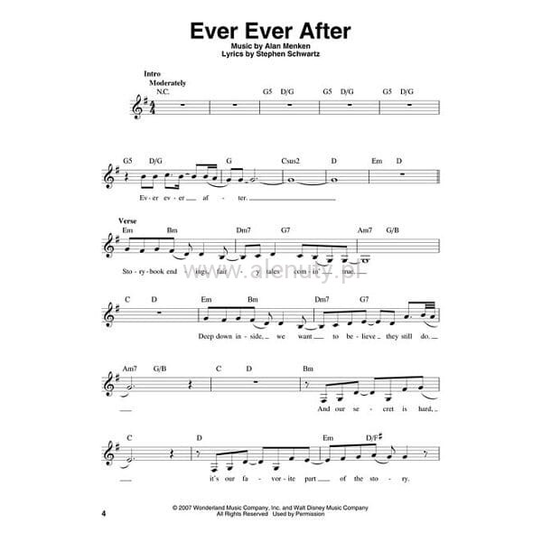 Prezentowana pozycja zawiera kolekcję 6 utworów z disneyowskiego filmu animowanego "Enchanted" - "Zaczarowana". Książka zawiera teksty, linię melodyczną i akordy.