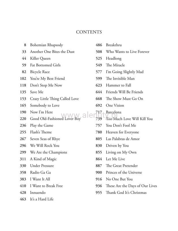 "Queen: The Platinum Collection" to prawdziwy skarb dla miłośników muzyki Queen. W tej publikacji znajdziemy linię melodyczną ze słowami, nuty oraz tabulatury na gitarę elektryczną, gitarę basową i perkusję dla prawie 50 utworów zespołu. To kompleksowe opracowanie, które pozwala na pełne odtworzenie charakterystycznego brzmienia Queen na różnych instrumentach.
