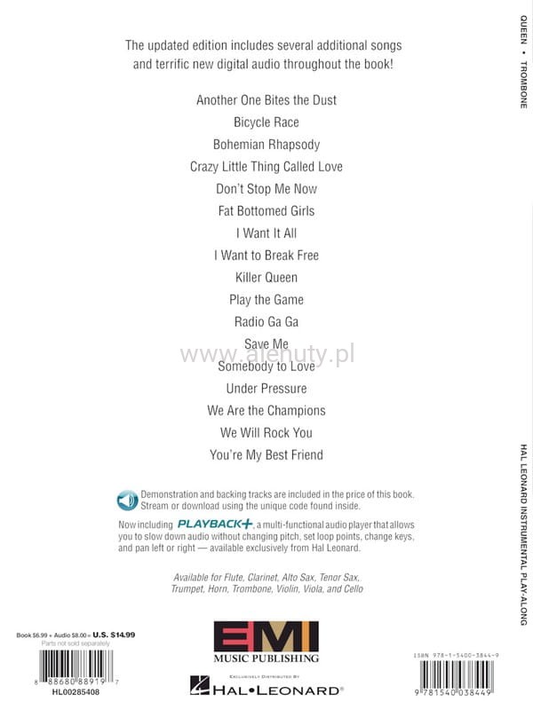 Pozycja z serii 'Instrumental Play-Along' zawiera kolekcję 17 najpopularniejszych utworów zespołu Queen w standardowym opracowaniu nutowym na puzon. Do książki dołączony jest specjalny kod umożliwiający pobranie z internetu dodatkowych materiałów muzycznych - podkładów z akompaniamentem.
