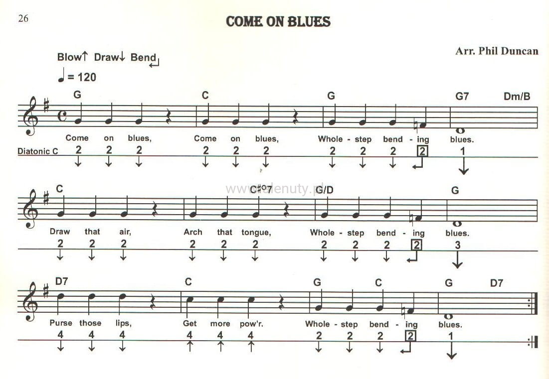 Książka zawiera podstawy bluesa na harmonijkę ustną.