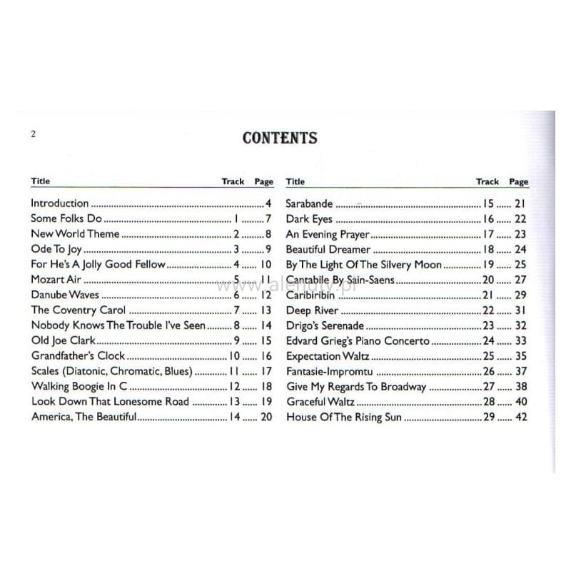Książeczka z serii "Qwikguide" - tzw. szybki przewodnik zawiera wszystkie niezbędne, podstawowe informacje do nauki gry na harmonijce chromatycznej w tonacji C. W książeczce znajduje się 26 utworów z pełnym tekstem oraz zasugerowanymi akordami, w standardowym zapisie nutowym oraz zapisie tabulaturowym na harmonijkę. Nuty dla początkujących.
