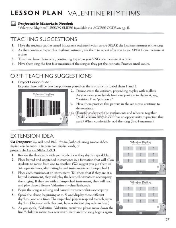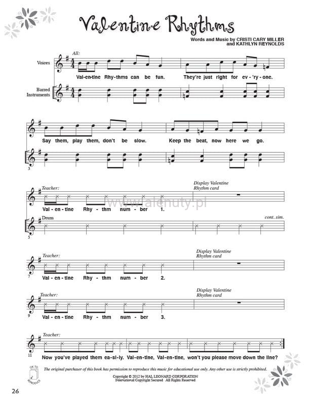 Zbiór materiałów zawartych w tej publikacji oparty został na metodzie Carla Orffa, która kładzie nacisk na naukę poprzez zabawę, rozwinięcie muzykalności i integrację słowa, muzyki i ruchu. Jej głównym elementem jest śpiew i gra na prostych instrumentach perkusyjnych. Ta kolekcja przedstawia wiele sposobów na wprowadzenie dzieci w świat tworzenia muzyki. Znajdziesz w niej piosenki, które obejmują śpiew, grę, akompaniamenty instrumentalne, prostą choreografię i wiele innych. Kolorowe interaktywne ilustracje, pomagają w nauce i zachęcają do gry. Kolekcja zawiera powtarzalne arkusze piosenek. Materiały dostępne są również w postaci cyfrowej, można z nimi pracować bezpośrednio po pobraniu ich na komputer, nie ma potrzeby stosowania specjalnego oprogramowania. Znajdziesz tam teksty piosenek i interaktywne ćwiczenia zwiększające możliwości uczenia się. Nuty i ćwiczenia dla początkujących.