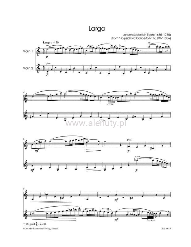 Bach, Johann Sebastian: Largo from "Harpsichord Concerto No. 5" BWV 1056