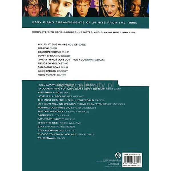 Pozycja z serii "Really Easy Piano" - w łatwym układzie na fortepian, jest pozycją, którą każdy powinien mieć w swojej kolekcji. Zawiera ona 24 największe hity lat 90-tych, takich wykonawców jak Sting, Sinead O'connor, Robbie Williams, Oasis, Cher i wielu innych. Opracowanie każdej piosenki zawiera zapis nutowy, akordy oraz pełen tekst.