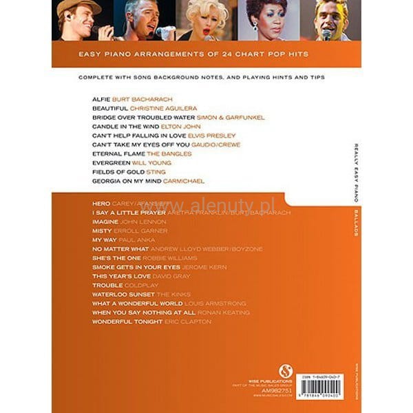 Pozycja z serii 'Really Easy Piano' - w łatwym układzie na fortepian, jest pozycją, którą każdy powinien mieć w swojej kolekcji. Proponowana pozycja zawiera tym razem 24 ballady, które potrafią zmiękczyć każde serce i wycisnąć łzę.