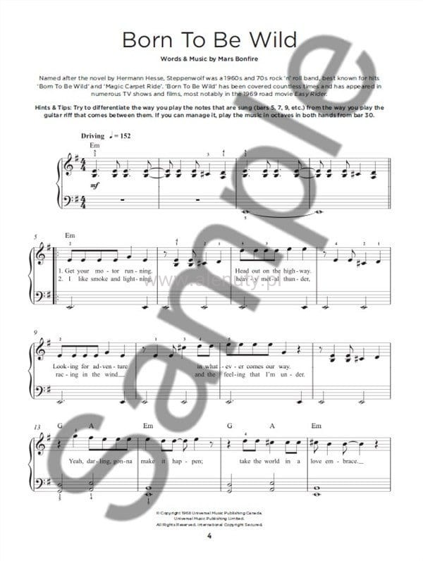 Pozycja z serii "Really Easy Piano" dla początkujących pianistów. W tym wydaniu 20 ulubionych i najbardziej znanych klasycznych utworów rockowych. Każda piosenka w łatwym zapisie nutowym wraz z akordami. Książka zawiera wskazówki i porady, które pomogą doskonalić grę.