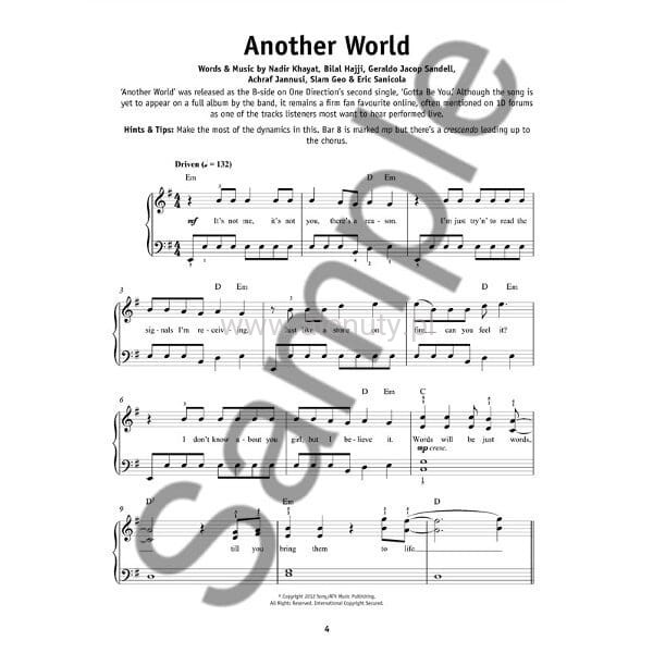 Pozycja z serii "Really Easy Piano" - w łatwym układzie na fortepian, jest pozycją, którą każdy powinien mieć w swojej kolekcji. Zawiera ona 18 najbardziej popularnych piosenek One Direction, między innymi: Summer Love, Rock Me, Little Things i wiele innych. Opracowanie każdej piosenki zawiera zapis nutowy, akordy oraz pełen tekst.