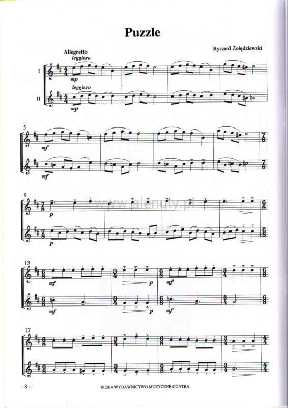 Prezentowana pozycja zawiera kolekcję 14 utworów Ryszarda Żołędziewskiego w opracowaniu nutowym na dwa saksofony.
