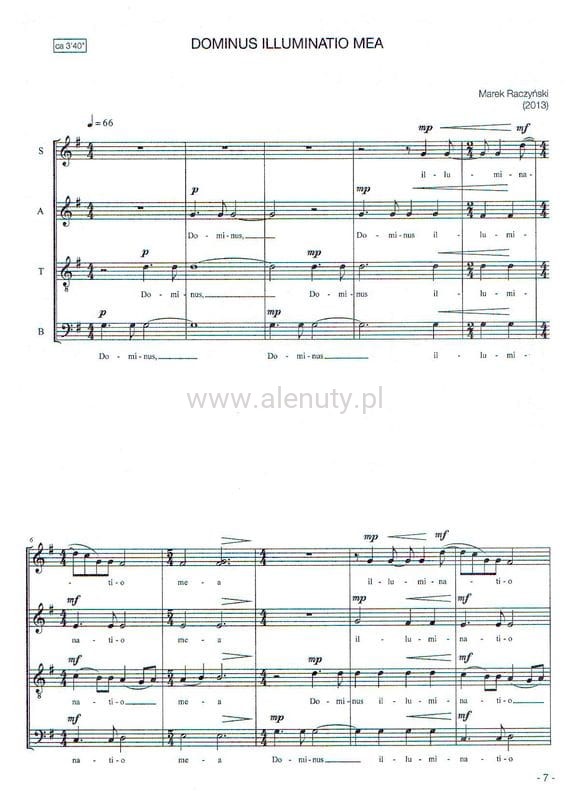 Pozycja z serii 'Sacred Choral Works', to pierwsza publikacja artysty, przedstawiciela młodego pokolenia kompozytorów - Marka Raczyńskiego - wieloletniego chórzysty "Poznańskich Słowików', współzałożyciela i członka zespołu wokalnego 'Minimus. Kompozytor doskonale zna i rozumie fakturę chóralną, jego kompozycje na chór a cappella cieszą się dużym uznaniem.