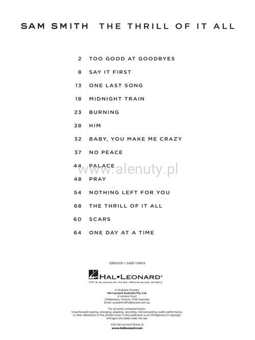 Nuty na fortepian (pianino) w łatwym opracowaniu drugiego albumu 'The Thrill of It All' Sam'a Smith'a, który był na szczycie rankingu albumów Billboard® w 2017 roku.