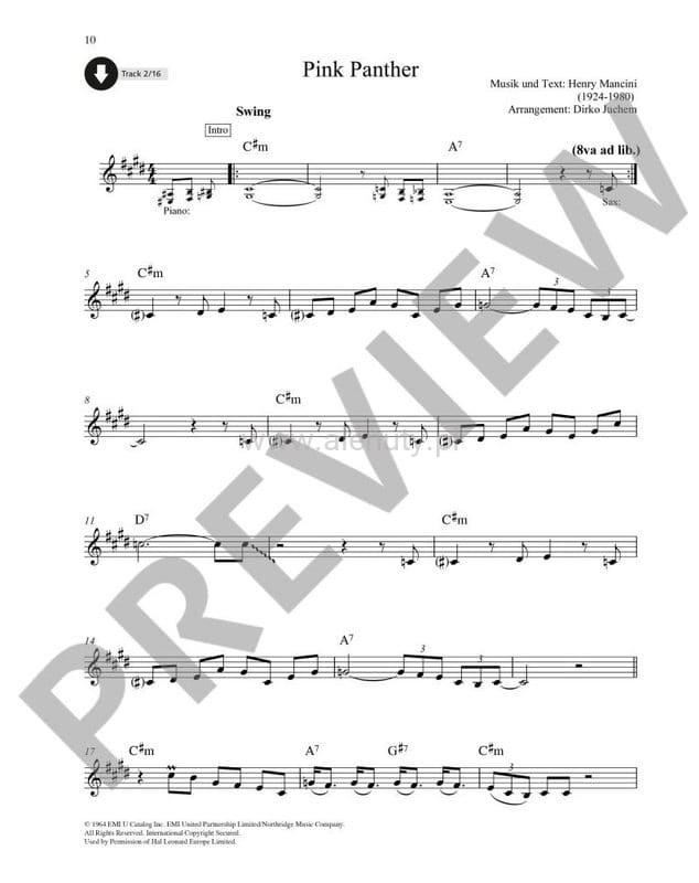 Publikacja zawiera kolekcję światowych hitów muzyki filmowej opracowanych na saksofon altowy z towarzyszeniem fortepianu. Dirko Juchem w kolejnym tomie popularnej serii „Schott Saxophone Lounge” mistrzowsko zaaranżował najpiękniejsze melodie ekranowe. Nuty przeznaczone dla muzyków początkujących.