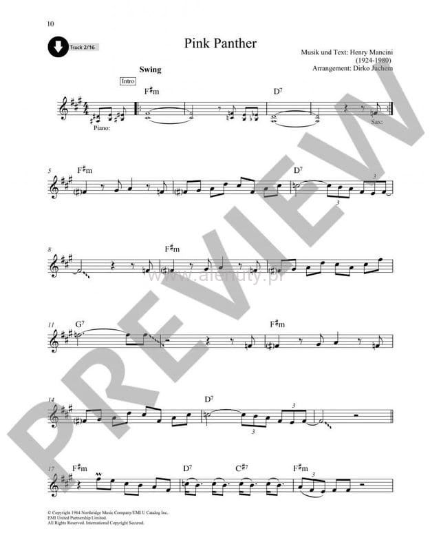 Publikacja zawiera kolekcję światowych hitów muzyki filmowej opracowanych na saksofon tenorowy z towarzyszeniem fortepianu. Dirko Juchem w kolejnym tomie popularnej serii „Schott Saxophone Lounge” mistrzowsko zaaranżował najpiękniejsze melodie ekranowe. Nuty przeznaczone dla muzyków początkujących.