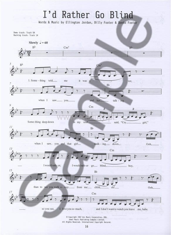 Pozycja z serii "Sing-Along With A Live Band" to wspaniała kolekcja 10 klasycznych bluesowych piosenek. Każda piosenka w zapisie nutowym z linią melodyczną, pełnym tekstem oraz akordami.