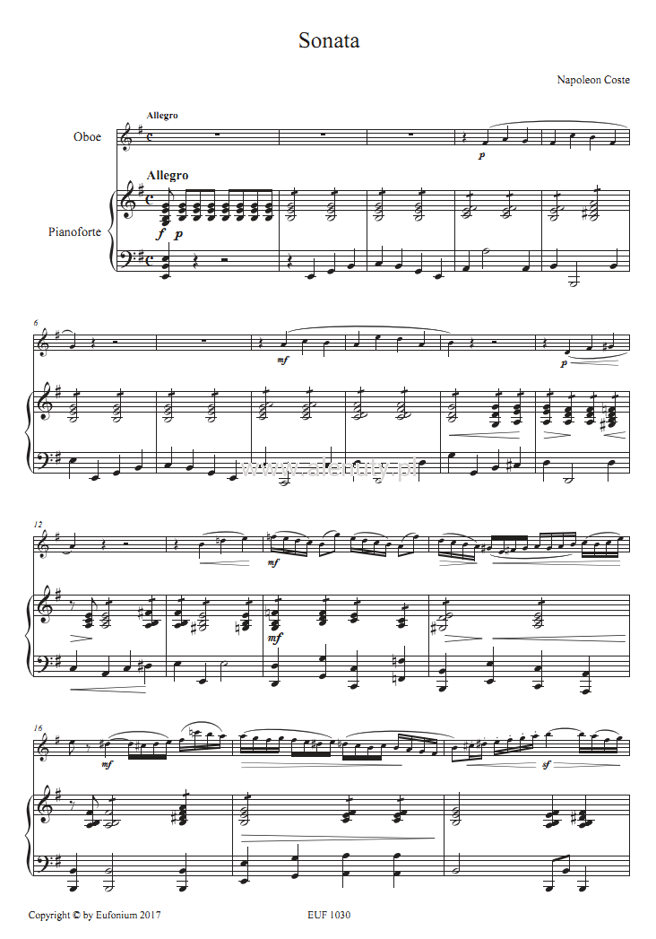 Napoléon Coste był francuskim gitarzystą klasycznym i kompozytorem. Publikacja zawiera utwory jego autorstwa. Nuty na obój i fortepian, dla średnio-zaawansowanych.