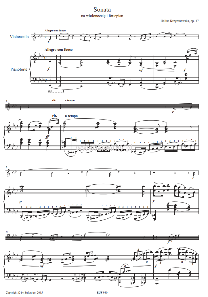 Halina Krzyżanowska – polska i francuska pianistka i kompozytorka. Publikacja zawiera sonatę jej kompozycji, nuty na wiolonczelę i fortepian, dla średnio-zaawansowanych.