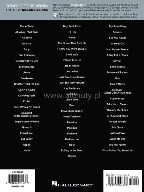 Songs of the 2010s (+ audio online) - nuty na fortepian, melodia, akordy gitarowe i słowa