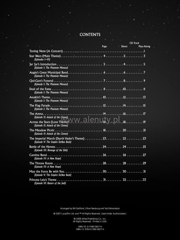 Po raz pierwszy Star Wars A Musical Journey (muzyka z części I-VI): w formie instrumentalnych solówek, które zawierają motywy ze wszystkich sześciu filmów z serii Gwiezdnych Wojen. Zostały zaaranżowane na flet, klarnet, saksofon altowy, saksofon tenorowy, trąbkę, róg w stroju F, puzon, akompaniament fortepianu, skrzypce, altówkę i wiolonczelę. Aranżacje są w pełni kompatybilne ze sobą i mogą być odtwarzane razem lub solo.