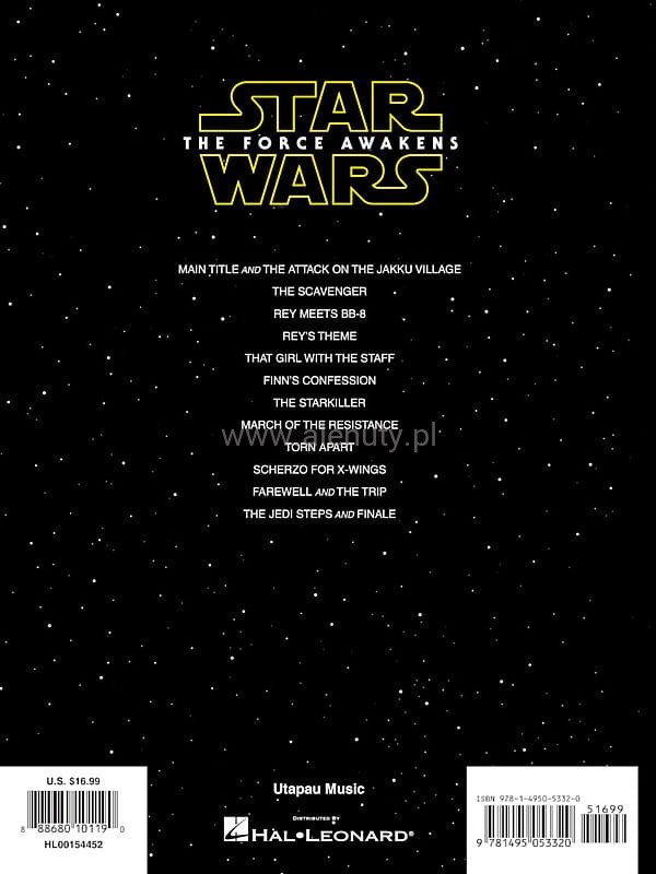 Pozycja z serii 'Easy Piano Songbook' zawiera utwory pochodzące z siódmej części sagi 'Star Wars' - 'Przebudzenie Mocy' w prostym opracowaniu na fortepian.
