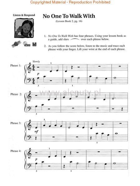 Materiały edukacyjne do gry na pianinie w serii Hal Leonard Student Piano Library. Dołączony kod do audio online