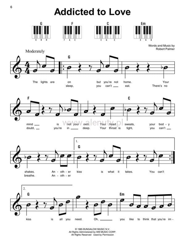 Książki z tej serii doskonale nadają się dla naprawdę początkujących pianistów z tego względu, że zawierają nuty literowe, akordy i dodatkowo jeszcze diagramy akordów klawiszowych, przypisanych konkretnie do danej piosenki.