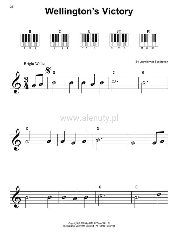 Te proste nuty na pianino Beethovena to zestawienie utworów mistrza muzyki klasycznej w jednej książce. Publikacja to kompilacja 21 popularnych utworów, które zachwycają zarówno uczniów jak i nauczycieli wprowadzając repertuar muzyki klasycznej na bardzo wczesnym etapie nauki. Wydanie prezentuje kolekcję majestatycznych kompozycji począwszy od sonat, symfonie oraz tańce takie jak menuet czy marsz. Znajdziesz tu m.in nuty literowe do utworu "Dla Elizy" i wielu innych znanych melodii. Każda z 21 kompozycji opracowana została na fortepian z diagramami akordów klawiszowych a także nazwami akordów. Umożliwia to nie tylko granie linii melodycznej ale także włączanie lewej ręki w dalszym etapie nauki.