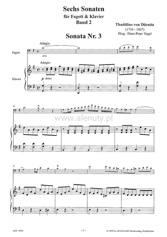 Thaddäus von Durnitz - Sechs Sonaten fur Fagott und Klavier - część 2 (3-4) - sonaty na fagot i fortepian