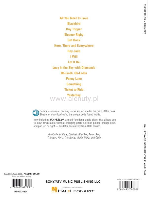 Kolekcja 15 największych przebojów zespołu The Beatles w łatwych, solowych aranżacjach na trąbkę.