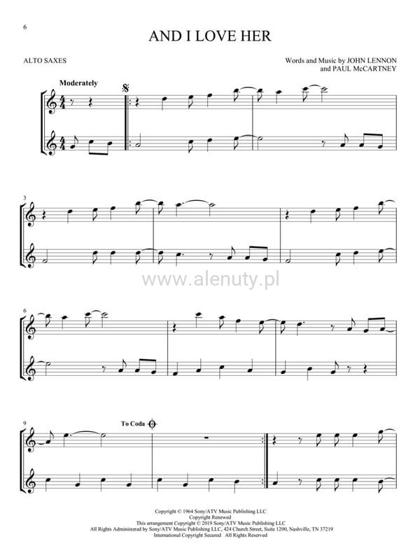 The Beatles for Two Alto Saxes - łatwe nuty na duet saksofonów altowych
