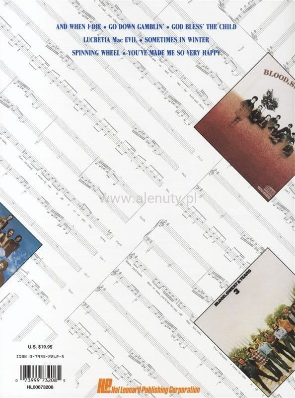 Siedem hitów z w stylu jazz/rockowym grupy Blood, Sweat & Tears. Książka zawiera linie wokalne, instrumentalne: instrumenty dęte, saksofon, klawisze, bas i perkusja, plus linia syntezatora dla instrumentów pomocniczych (każdy dźwięk jest wyraźnie zidentyfikowany). Nuty dla średnio-zaawansowanych