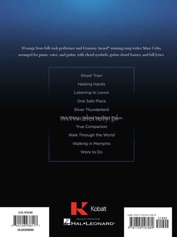 Dziesięć najlepszych prac artysty zdobywcy nagrody Grammy - Marca Cohna (amerykański wokalista, pianista, kompozytor, autor tekstów, producent nagrań), który stał się popularny dzięki przebojowi z 1991 roku „Walking in Memphis”. Ta kolekcja zawiera utwory na fortepian, głos i gitarę. Nuty dla średnio-zaawansowanych.