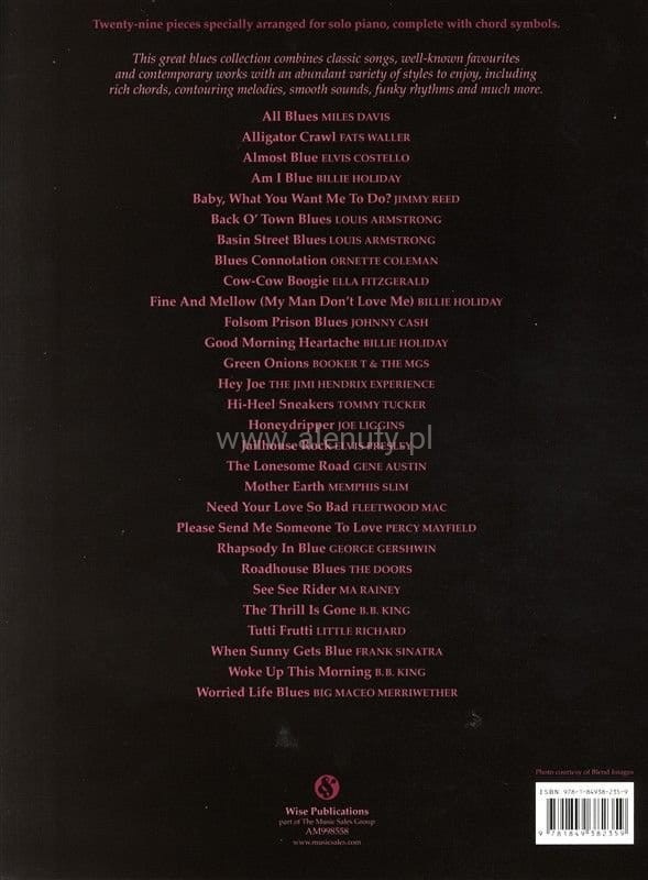 Ta wspaniała kolekcja bluesowa łączy w sobie klasyczne piosenki, dobrze znane, ulubione i współczesne utwory z dużą różnorodnością stylów, bogatymi akordami, ciekawymi melodiami, płynnymi dźwiękami i funkowymi rytmami. Opracowanie zawiera nuty na fortepian, dla średnio-zaawansowanych.