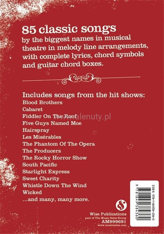 Publikacja zawiera 85 klasycznych utworów największych kompozytorów teatru muzycznego. Prezentowane są w przyjaznych dla koncertów aranżacjach, z liniami melodycznymi, kompletnymi tekstami i symbolami akordów. Nuty na keyboard, dla średnio zaawansowanych