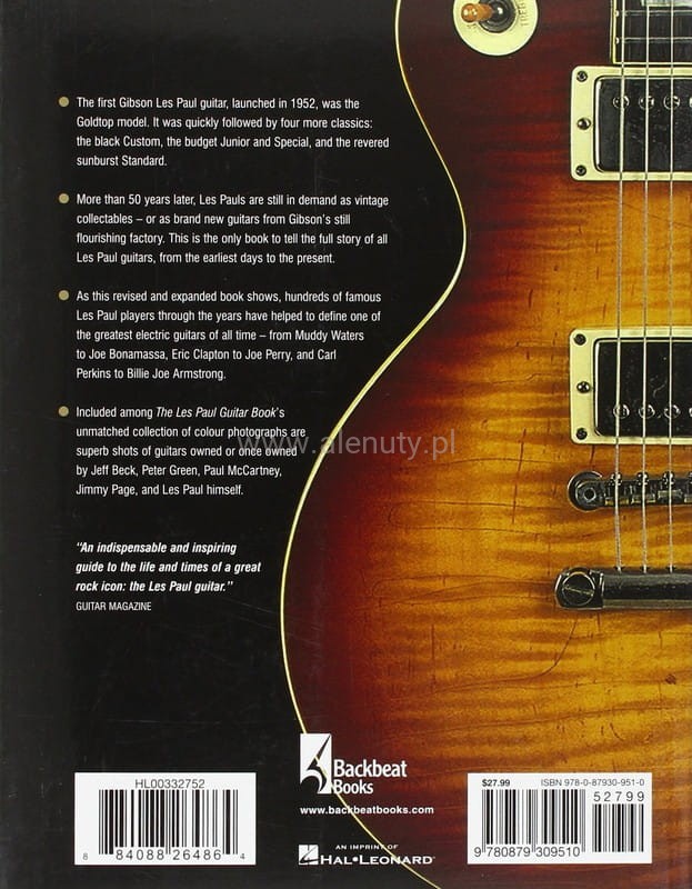 Odświeżona i zaktualizowana wersja przewodnika po najsłynniejszej gitarze świata: Gibson Les Paul. Wydanie wzbogacone 16 kolejnymi stronami oraz 45 nowymi zdjęciami. "A Complete History of Gibson Les Paul Guitars" to historia prawdziwa jednego z największych instrumentów muzycznych XX wieku, instrumentu który niezmiennie od lat stanowi centrum każdej sceny estradowej. Ta ulepszona edycja książki zawiera pełną historię gitary - od oryginalnego Goldtopu poprzez Fretless Wonder i czczony „Burst” z lat 1958–60, aż po dzisiejsze reedycje, oraz ponad 250 zdjęć archiwalnych, koncertowych i specjalnie zamówionych zdjęć studyjnych. The Les Paul Guitar Book to wyczerpujący przewodnik po najbardziej znanej gitarze świata, absolutny must-have każdego gitarzysty i kolekcjonera.