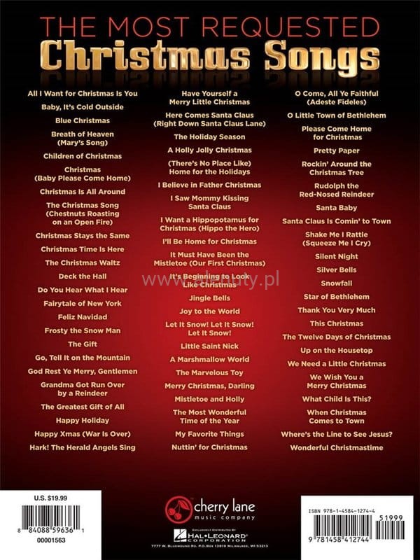 The Most Requested Christmas Songs (PVG) - kolędy i piosenki świąteczne na fortepian, wokal, akordy gitarowe i słowa