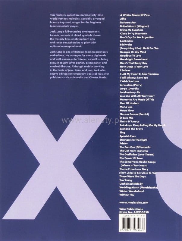 Kolekcja 49 najbardziej poszukiwanych i najbardziej popularnych utworów na świecie, zaaranżowanych na saksofon altowy i tenorowy przez Jack'a Longa. Utwory w standardowym zapisie nutowym skierowane są do początkujących i średnio-zaawansowanych wykonawców.