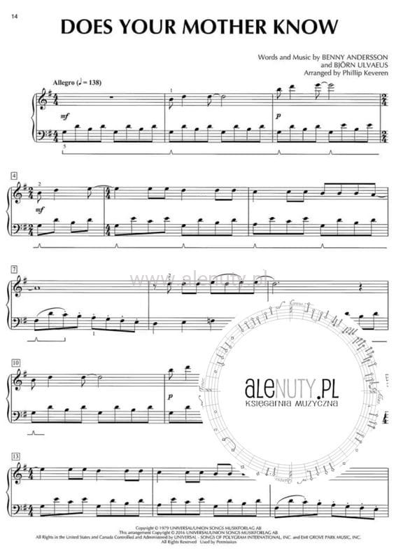 Publikacja zawiera 15 najlepszych hitów zespołu ABBA zaaranżowanych przez Phillipa Keverena na fortepian dla średnio-zaawansowanych.
