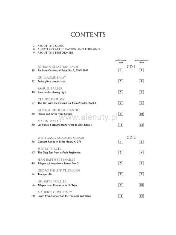 Pozycja zawiera kolekcję utworów zaaranżowanych na trabkę dla średniozaawanowanych. Wszystkie utwory w zapisie nutowym.