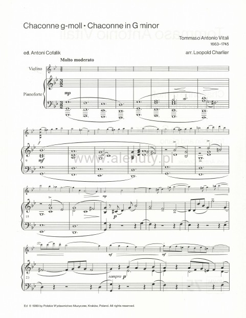 Tomasso Antonio Vitali: Ciaccona g-moll - nuty na skrzypce i fortepian