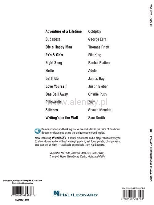 Pozycja z serii 'Instrumental Play-Along' zawiera kolekcję 12 największych i najgorętszych współczesnych hitów, w opracowaniu na skrzypce. Nuty dla początkujących.