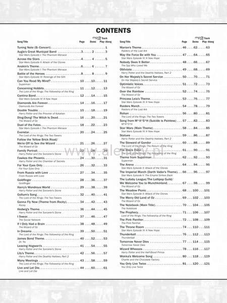 Kolekcja 60 największych hitów spośród muzyki filmowej w łatwym opracowaniu na trąbkę. Dzięki prostej aranżacji, te nuty na trąbkę nadają się dla mało doświadczonych trębaczy. Do książki dołączony jest specjalny kod umożliwiający dostęp do materiałów muzycznych przez Internet. Dostęp możesz uzyskać za pomocą komputera, smartfonu i tabletu. Pliki audio zawierają m.in. wersje demo oraz podkłady do zagrania każdego utworu i są w cenie książki. O tym w jaki sposób uzyskać do nich dostęp przeczytasz >>> w artykule