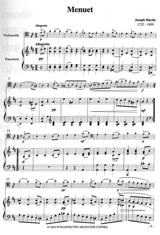 Publikacja zawiera zbiór utworów F.J.Haydna, L. Boccheriniego, W.A. Mozarta i F.P.Schuberta w zapisie nutowym na wiolonczelę z fortepianem, opracowane przez T. Mazura dla średniozaawanowanych muzyków.