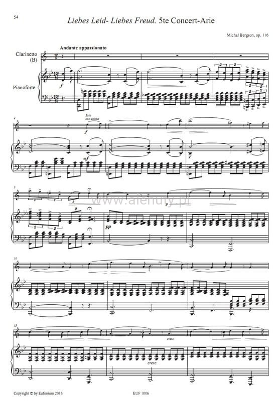Zbiór utworów Michała Bergsona na klarnet z akompaniamentem fortepianu. Nuty dla średnio-zaawansowanych.