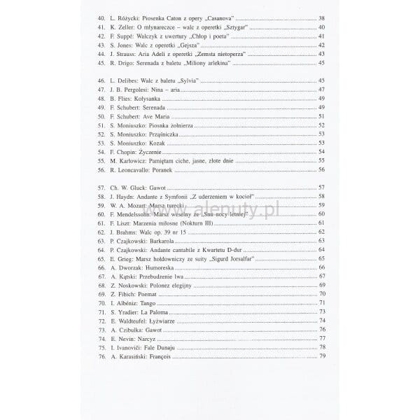 Publikacja należy do serii 'Pedagogicznej', to zbiór 76 kompozycji fortepianowych w opracowaniu dla początkujących. Są to znane i lubiane dzieła muzyków wszechczasów jak: Moniuszko (tematy z 'Halki', 'Strasznego dworu'), Verdi, Bizet ('Carmen') czy Mozart ('Marsz turecki').